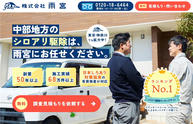 シロアリ駆除の雨宮は、創業から50年以上の歴史と実績を持ち、高い技術力と信頼性を誇る業者です。